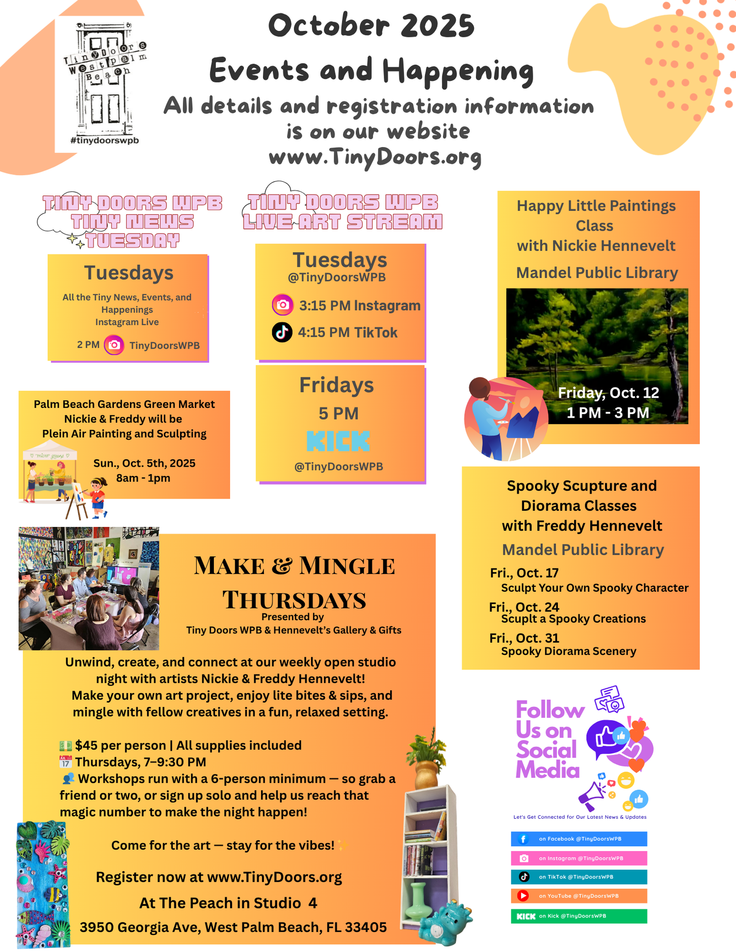 Here are our events and happenings on schedule for October 2025. Full Details are on our event page.