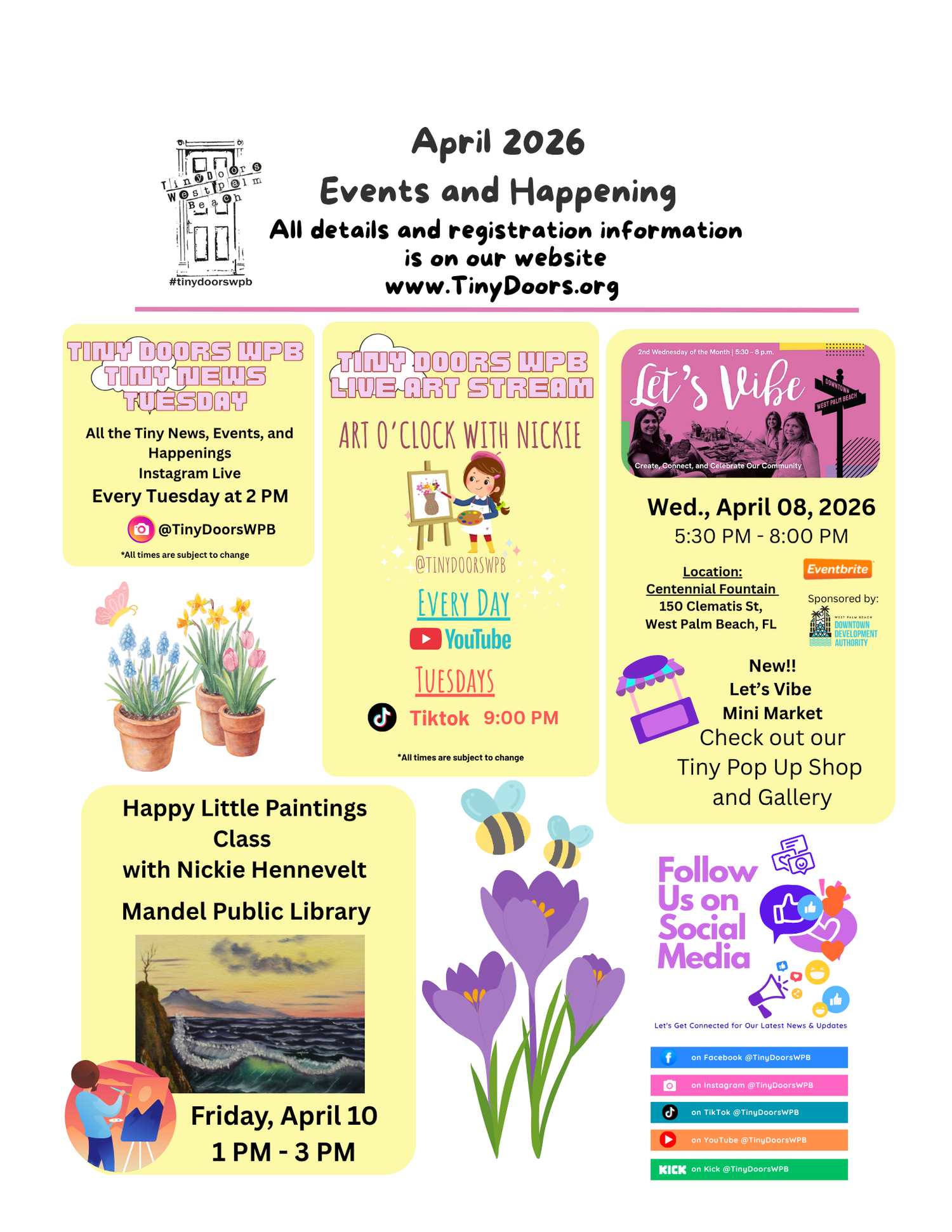 Create your own Tiny Door or choose from a playful selection of small-scale art projects led by artist Nickie Hennevelt of Tiny Doors WPB.